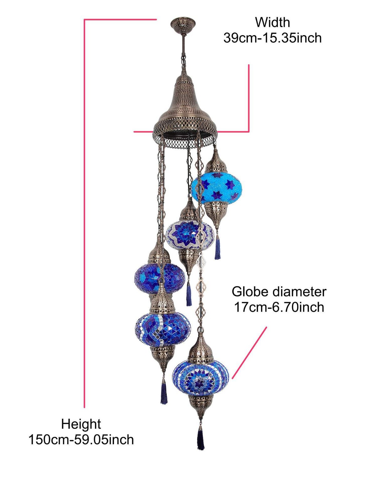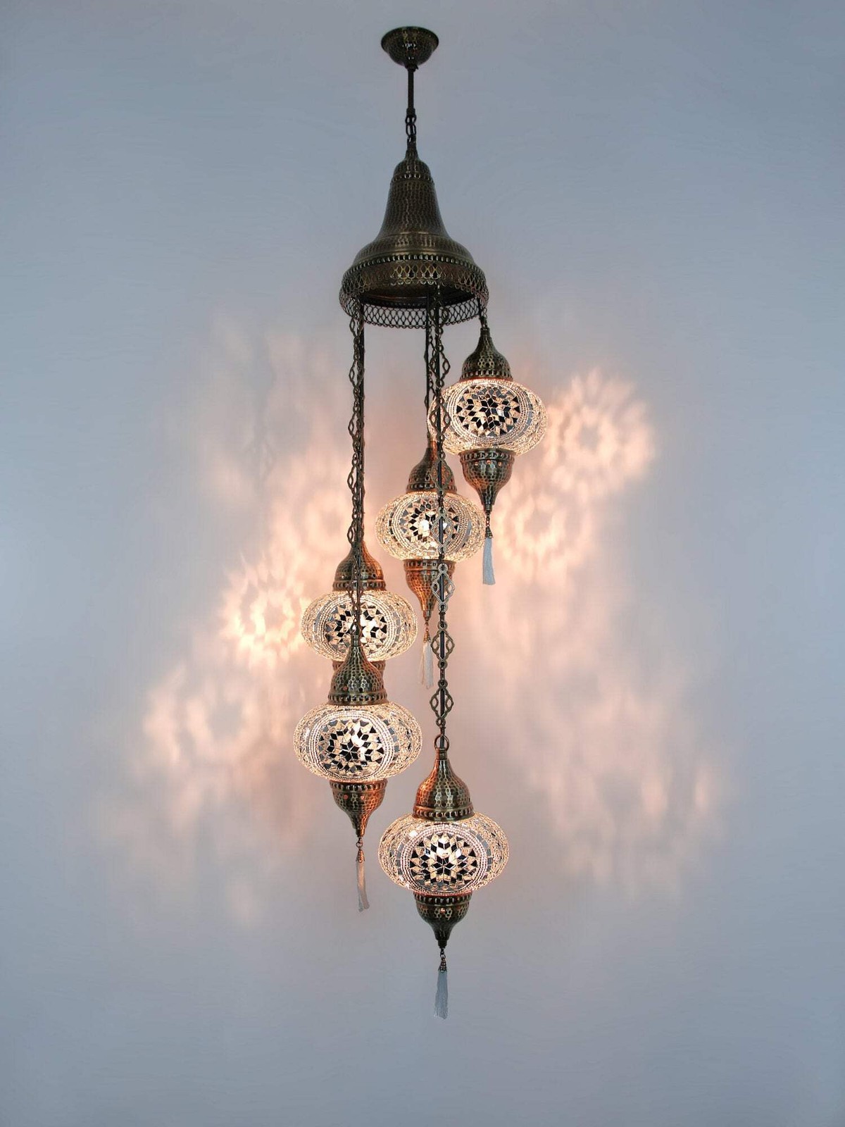 Darüber hinaus bietet der türkische Mosaik-Kronleuchter 5-Kugel farbenfroh neues Modell Anpassungsmöglichkeiten, um Ihren Vorlieben gerecht zu werden. Insbesondere können Sie aus einer Vielzahl von Farbkombinationen wählen, sodass Sie einen Kronleuchter kreieren können, der perfekt zu Ihrer Einrichtung passt.