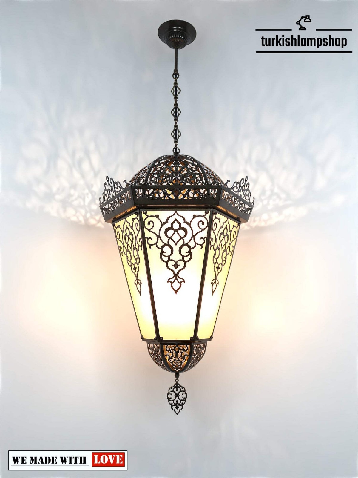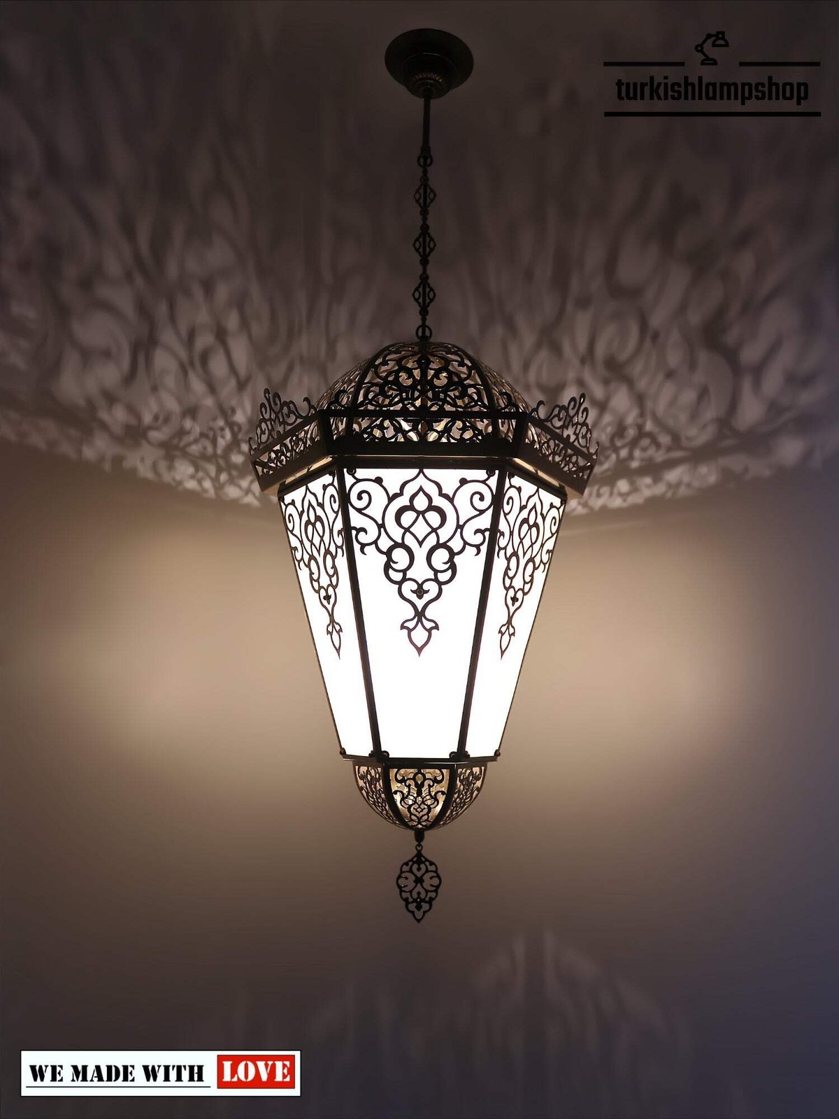 Beleuchten Sie jeden Raum mit dieser wunderschönen Pendelleuchte mit türkischem Muster, die mit aufwendigen lasergeschnittenen Details gestaltet ist und in jedem Zuhause eine schöne Atmosphäre schafft. Ihr klassischer Stil strahlt jedoch eine einladende Wärme aus und sorgt für elegantes Licht in Ihrem Lieblingsraum.