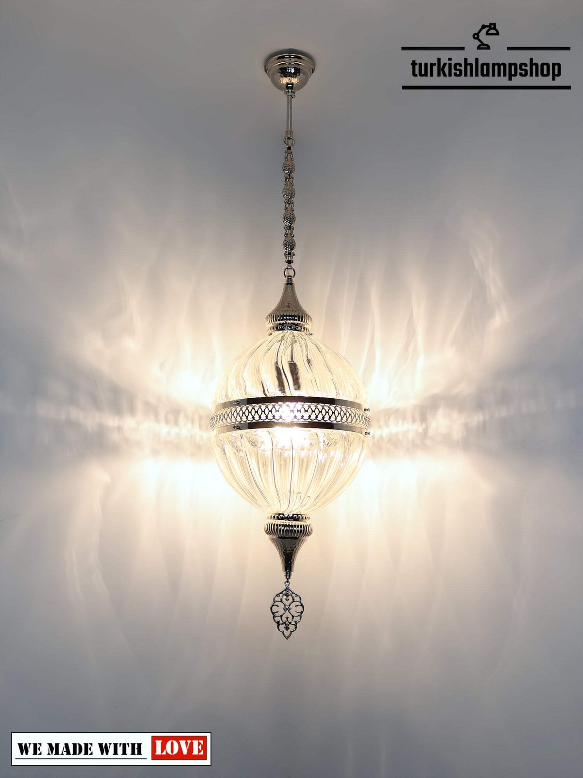 Also Turkish lantern pyrex glass pendant lamp is made by skilled artisans knowledgeable in the art of glassblowing. Similarly, each lamp is made of fire-resistant glass known for its clarity. Especially the clear color of the glass allows the light to shine through beautifully. Thus it creates an inviting atmosphere in any room.