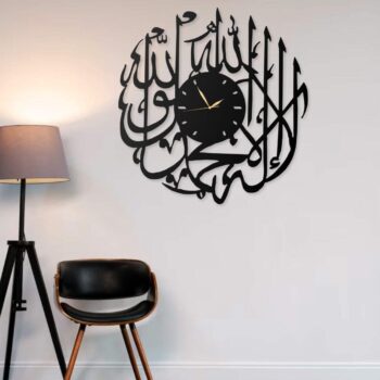 Diese elegante Metall-Wanduhr zeigt die Kelime-i Tevhid in stilvoller arabischer Schrift und verbindet Funktionalität mit spiritueller Ästhetik. Ideal für Wohnräume, Büros oder Gebetsräume.✨ Produktdetails: